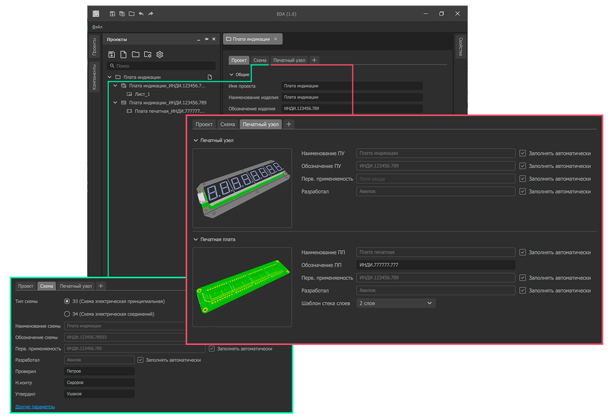 соответствии с ЕСКД, а основные атрибуты автоматически синхронизируются с картой проекта.